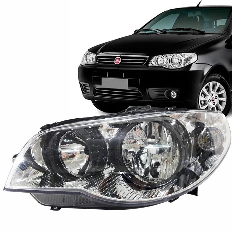Farol Lado Esquerdo Foco Duplo Máscara Cromada Canhão Preto Palio Siena Strada Palio Weekend Todos G3 2003 até 2016