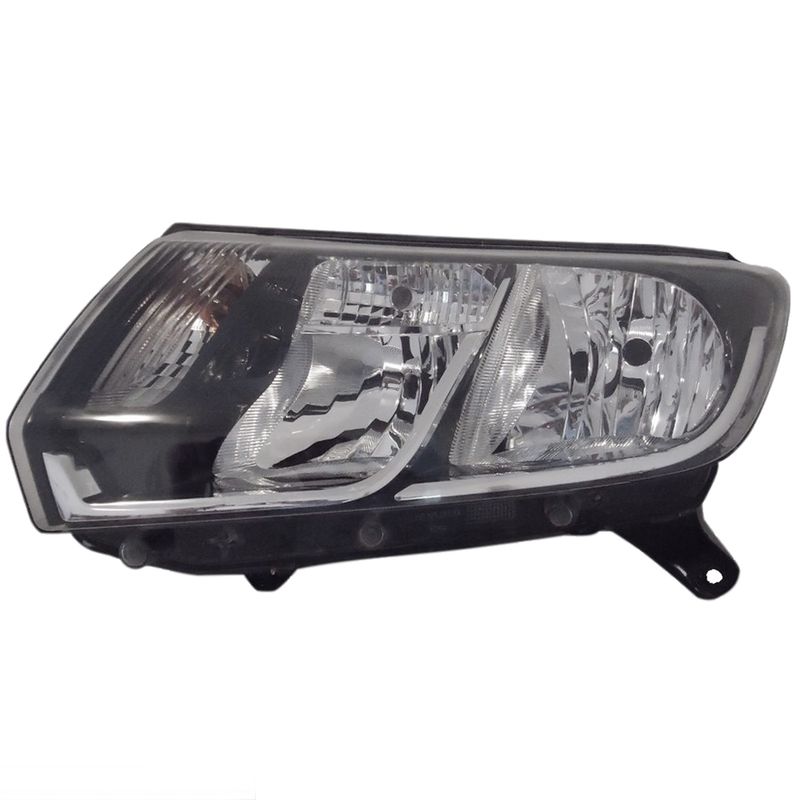 Farol Principal Foco Duplo Máscara Negra Friso Cromado Lado Esquerdo Logan e Sandero 2014 até 2019
