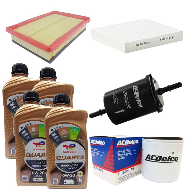 Kit Revisão 4 Litros 0W20 Total Dexos1 + Filtros Cobalt Onix Prisma Spin 2017 em Diante 4 Cilindros