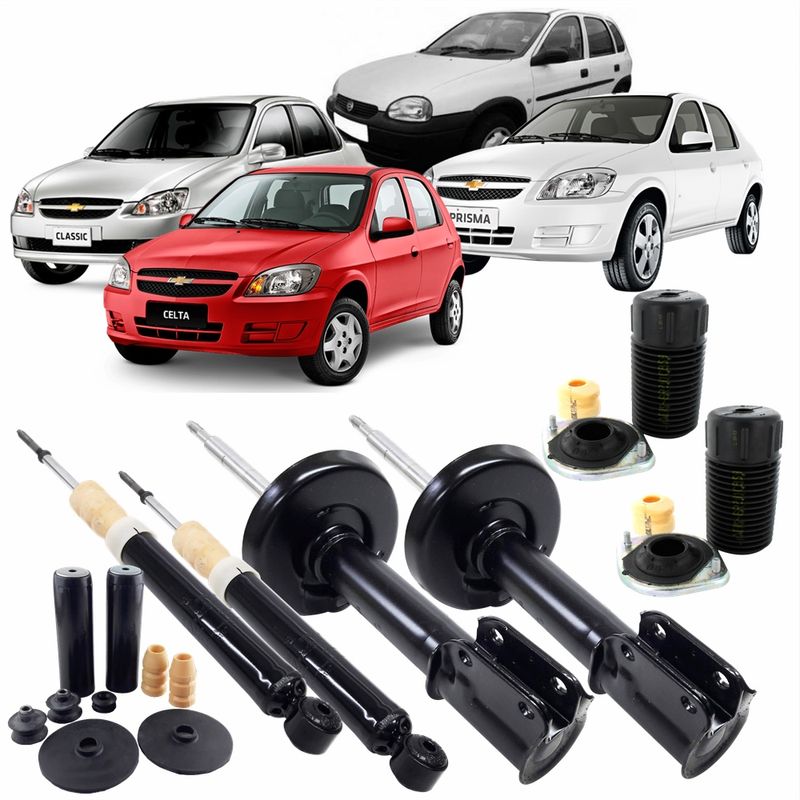 Kit 4 Amortecedores Originais Turbogás + Kit Completo Corsa 94 até 05 Celta 00 até 2017 Prisma 06 até 2012 Classic 02 até 2017