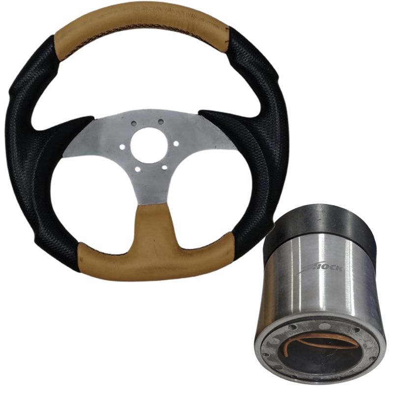 Combo Cubo Volante Esportivo Alumínio Chevette 1973 até 1993 + Volante Esportivo Cor Amarelo Couro