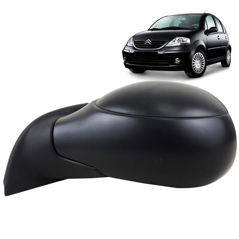 Espelho Retrovisor Externo Preto Texturizado Controle Manual Citroen C3 2003 até 2012