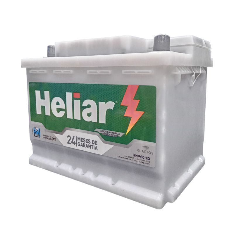 Bateria Heliar 60 Amperes Modelo Caixa Alta Lado Positivo Direito 24 Meses de Garantia