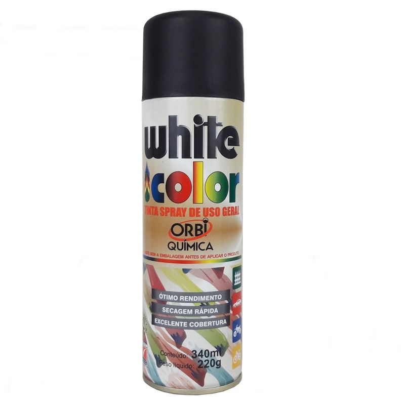 Tinta Spray de Uso Geral White Color Preto Brilhante Orbi Química 340ml / 220g