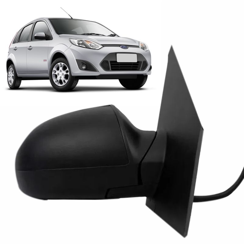 Espelho Retrovisor Externo Controle Manual com Capa Preto Liso Ford Fiesta Hatch e Sedan 2002 até 2014