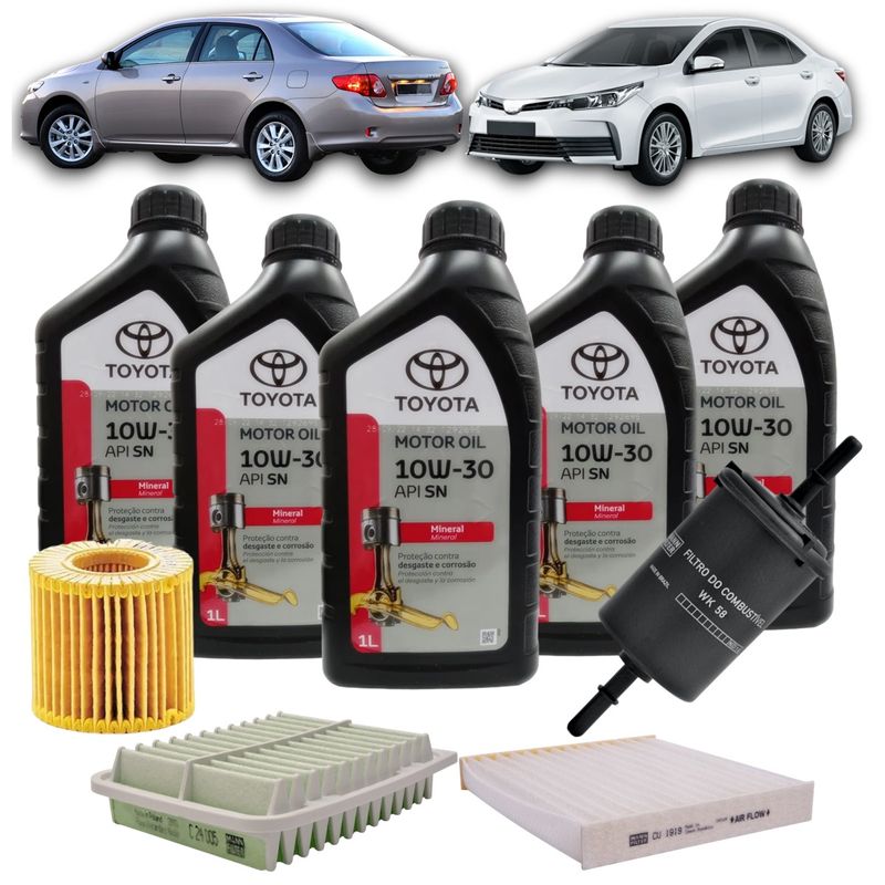 Kit Revisão 5 Litros de Óleo Toyota 10W30 Mineral + Kit de Filtros Mann Filter Toyota Corolla 1.8/2.0 16V Flex 2010 até 2019